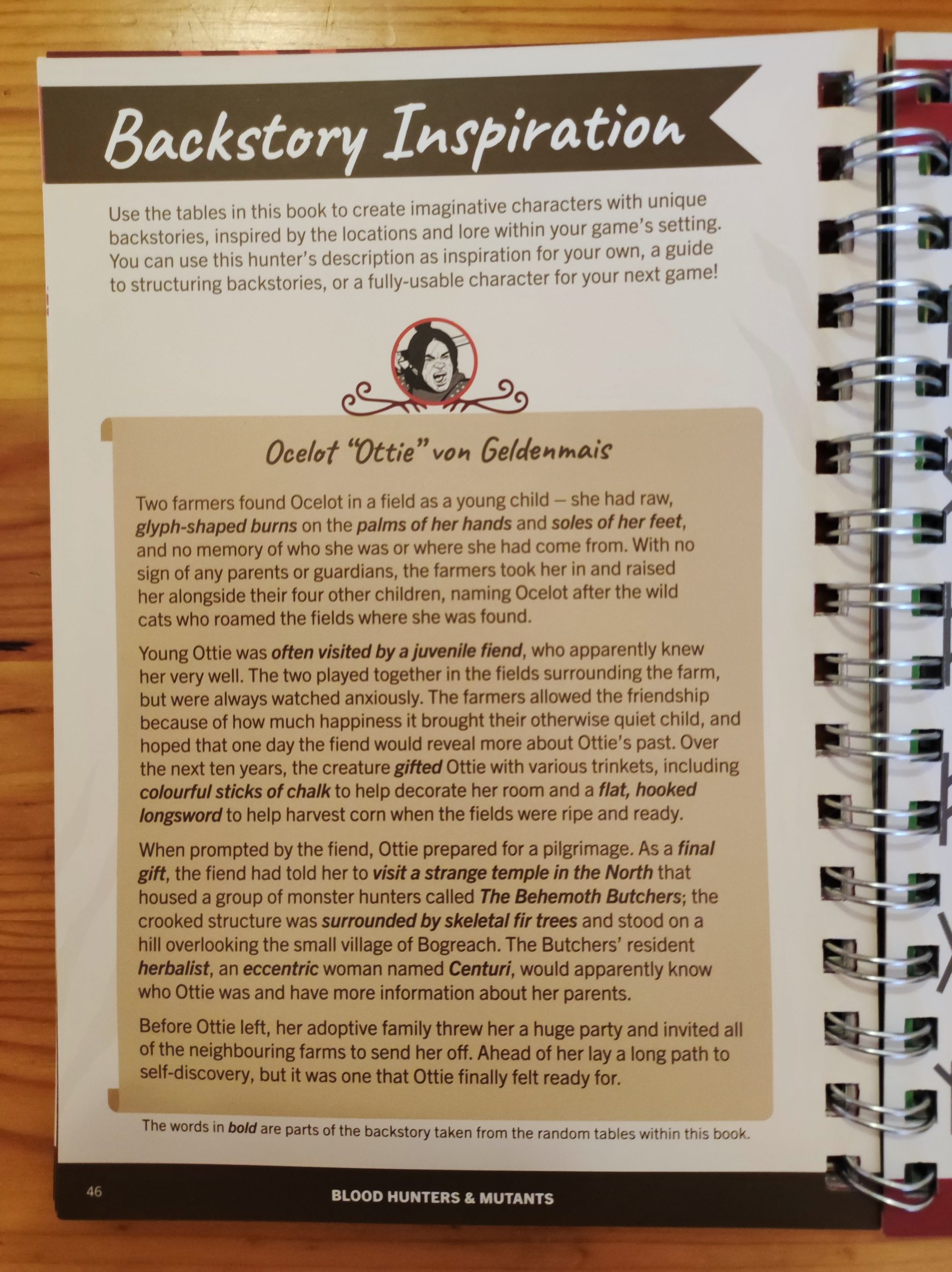 Un piacevole dettaglio è la presenza, all’inizio di ogni capitolo, di un PG creato tramite le tabelle presenti nel manuale; gli esempi sono sempre utili!