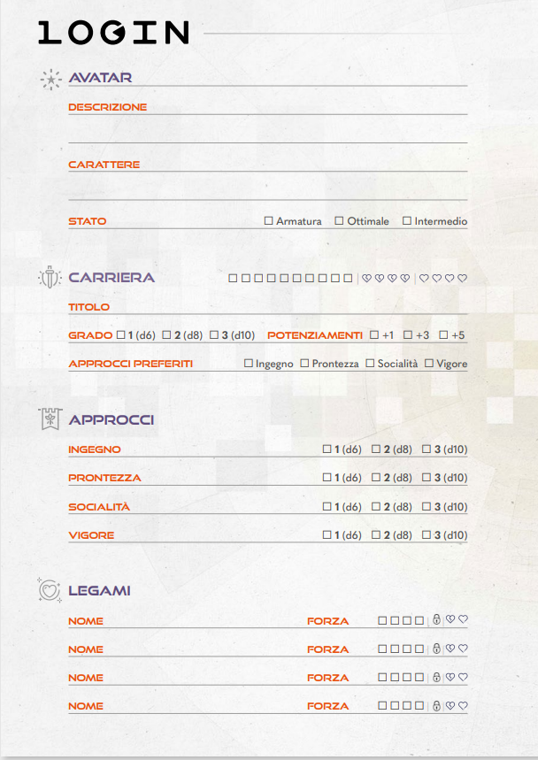 Motivazioni (Drives): il sogno del PG, ciò che lo spinge ad andare avanti e a rischiare l’osso del collo.