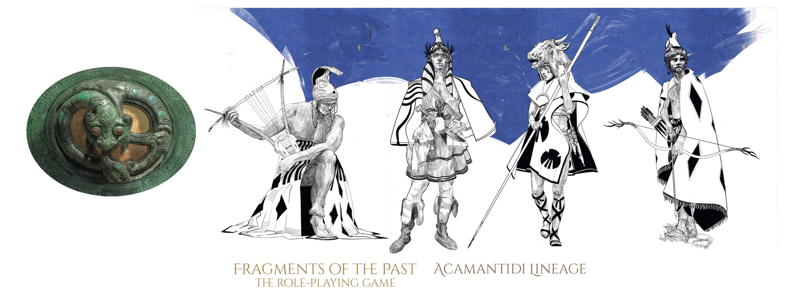 I personaggi sono il motore delle storie. Fragments of the Past è nato per raccontare due tipi di narrazioni: i cicli epici e le tragedie. Da una parte le leggende di gesta immortali di nuovi Achille, Diomede, Giasone e Teseo. Dall’altra parte le angoscianti vicende di tormentati personaggi profondamente scavati dagli eventi, alternativi Edipo, Medea, Antigone o Clitennestra.