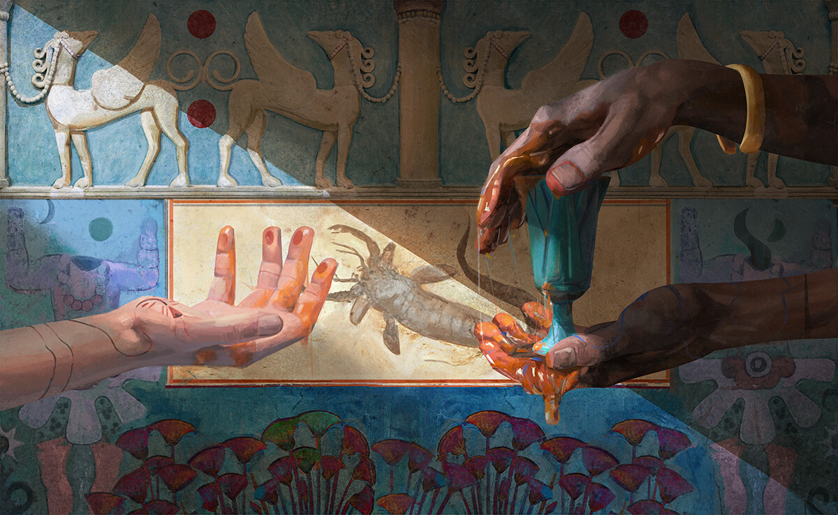 Preferisco quindi cercare di comunicare il senso di quello che è scritto. E’ presentato un mondo che non è un “copia, mischia e incolla” dei popoli antichi del Mediterraneo. Non è un reskin. Ovviamente gli elementi non possono essere completamente inventati tutti ex novo. Ma vi assicuro che addentrarsi tra le pagine di Fragments of the Past dà l’impressione di scoprire nuovi popoli e culture emerse da qualche rivoluzionario studio archeoantropologico.