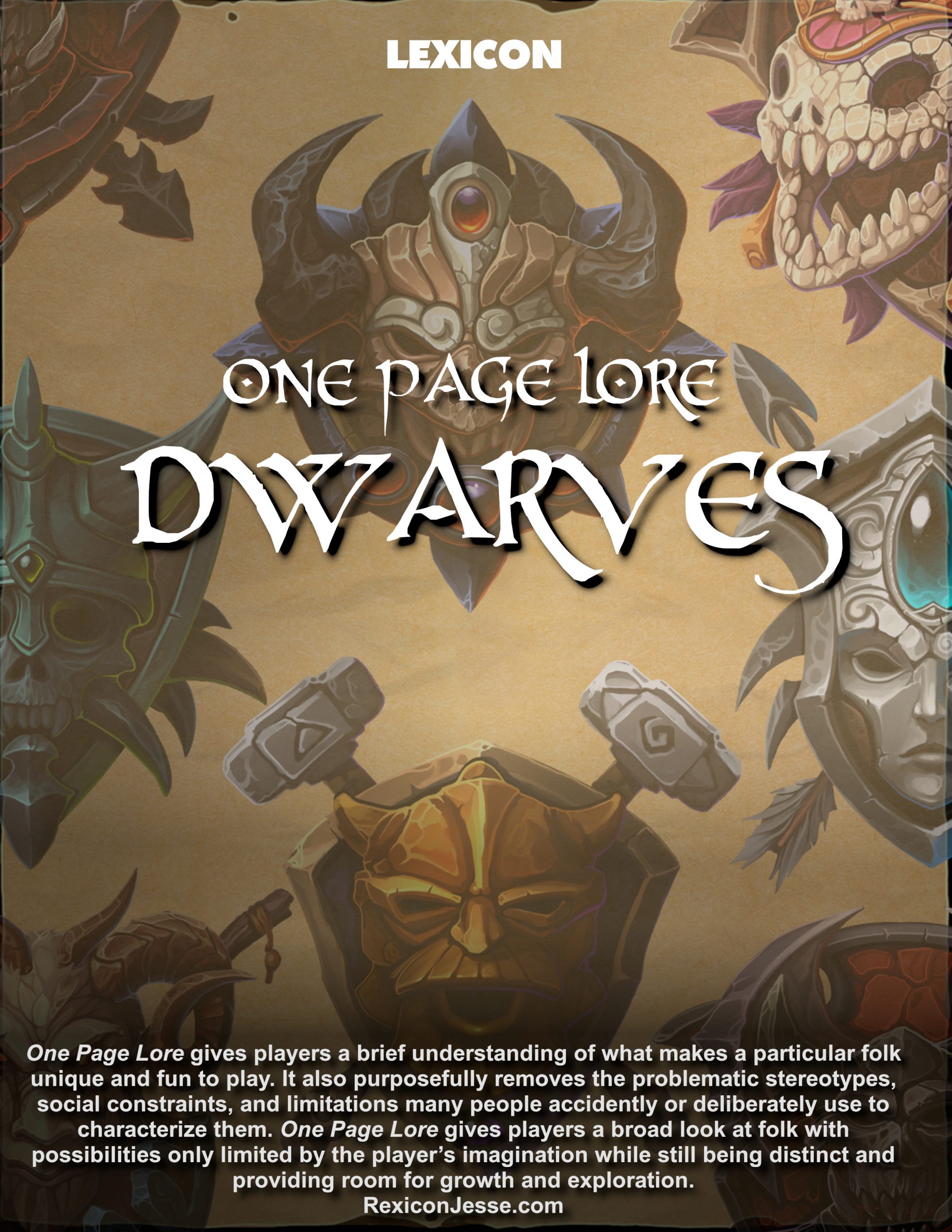 One Page Lore is a publication that offers brilliant characterizations of races far from the usual racist stereotypes. This Kickstarter project is called Fantasy Folk because it treats exotic races such as nagas, elves, gnolls, fairies, dikarya (mushroom people), lizardfolk, halflings, kobolds, quericu (tree people), orcs, dwarfs and goblins.
