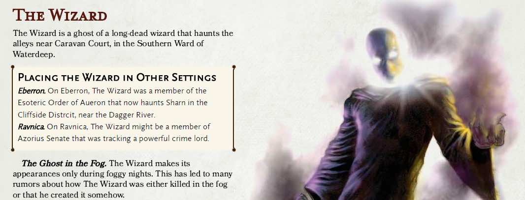 Volo’s Guide to Ghosts deals with the theme of the paranormal, the ghosts, the infestations and communication with these entities. Its contents add valuable material for D&D5e, both for horror and epic scenarios. In general I found the hooks to the various official settings of Wizards of the Coast very useful, so that I could easily use this manual with scenarios such as Eberron and Ravnica. But now let’s see in detail what can be found inside!