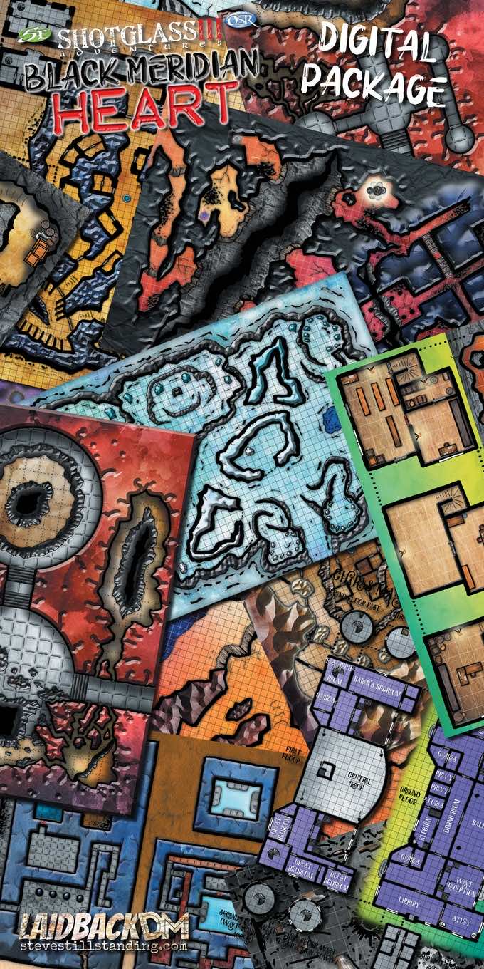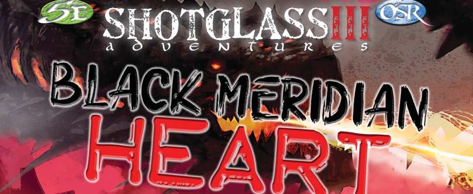 Shotglass Adventures 3, sottotitolato Black Meridian Heart, è una raccolta di 10 avventure di vario genere scritte per offrire flessibilità e divertimento con tempi di preparazione contenuti. Ognuna di esse può essere giocata come avventura a sè stante della durata di 2-3 sessioni (7-10 ore di gioco) o come parte di una campagna.