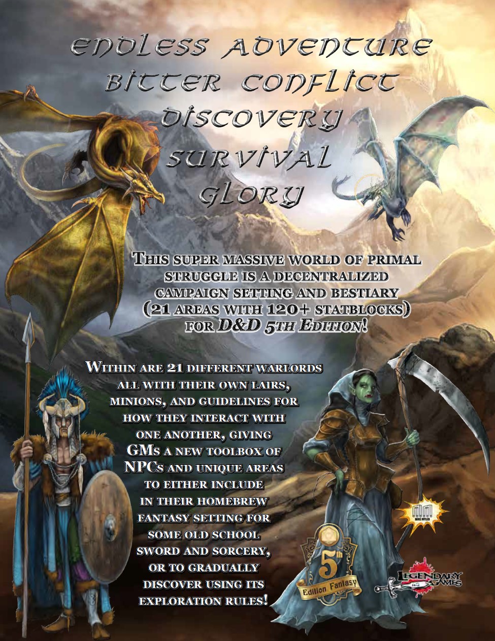 Ma la vera nota di differenziazione di Vast Kaviya rispetto ad altre produzioni altrettanto corpose per D&D5e è invece la tipologia di ambientazione stessa. Si tratta infatti di un mondo primordiale, un mondo senza dei, senza economia, senza un uso della magia strutturato. E’ una terra ruvida, agli inizi, che va combattuta e plasmata e che porta con sè molte particolarità che la rendono unica e interessante.