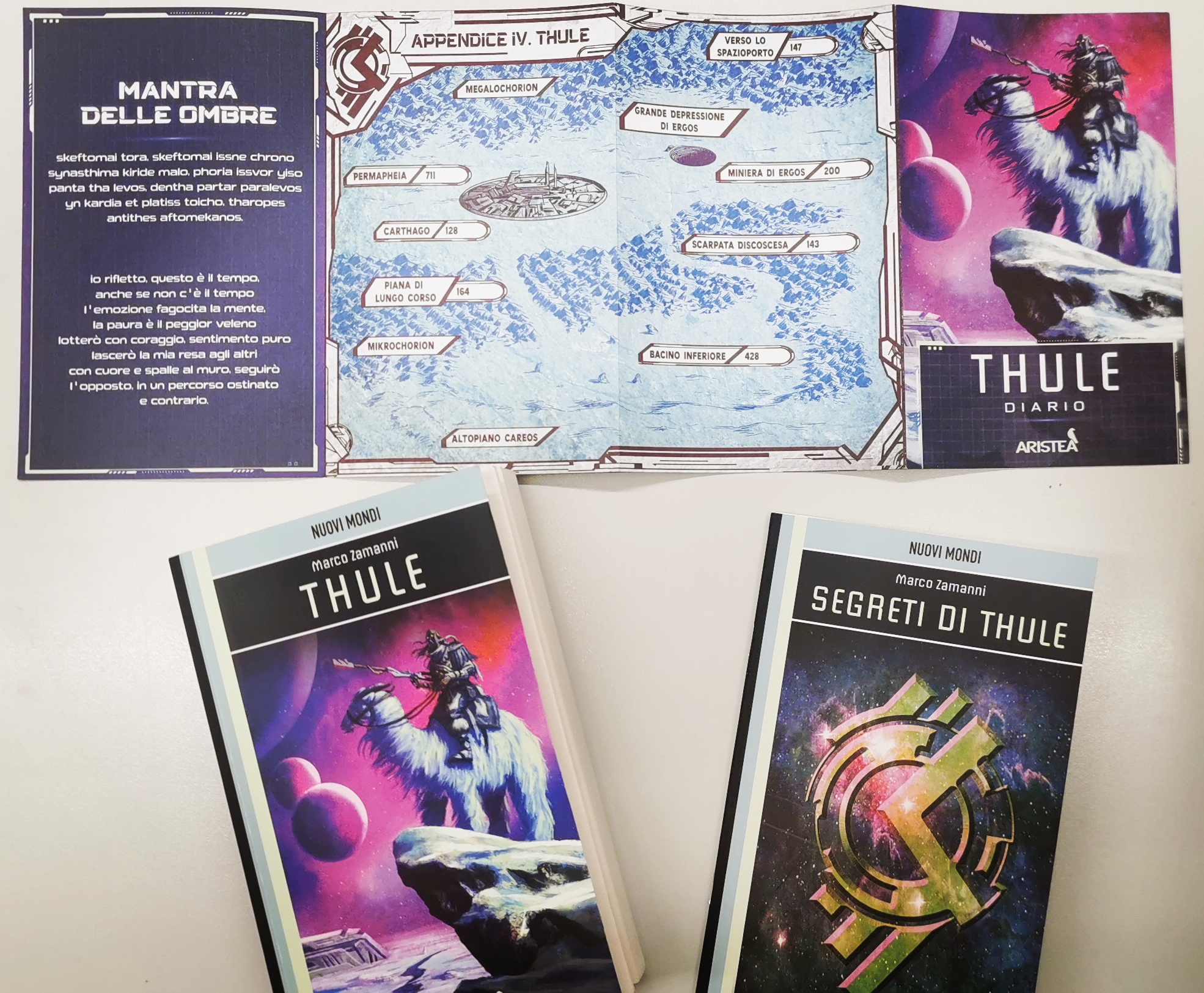 Infine, per permettere ai lettori di immergersi ancor più nell’ambientazione, è stato creato un supplemento al librogame chiamato i segreti di Thule. All’interno si trova un glossario e un riepilogo degli eventi che hanno portato l’umanità lontano dal pianeta Terra. Nel supplemento poi sono presenti le regole per provare lo Shamat, un gioco di bluff tra due giocatori presente all’interno del mondo di Thule.